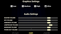 Hey all! Settings will be included in the night 6 update, along with what I have in the image I also will try to have resolution settings and possibly a windowed/fullscreen toggle...